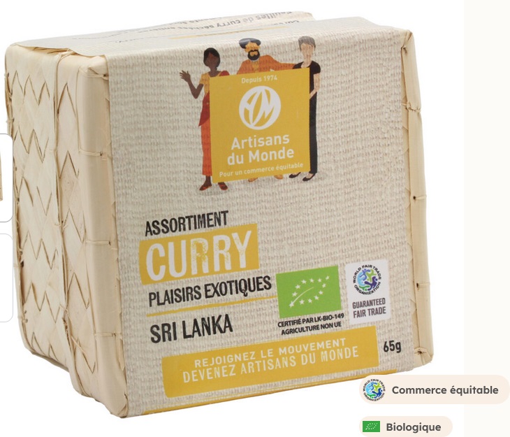 Éveillez vos sens avec l’Assortiment de curry bio 65 g, un coffret qui rassemble quatre épices incontournables : un curry doux, un curry fort, du curcuma et des feuilles de curry. Tout juste dosé, il permet de donner du caractère à vos sauces, plats exotiques ou marinades, tout en respectant les valeurs du commerce équitable et de l’agriculture biologique.